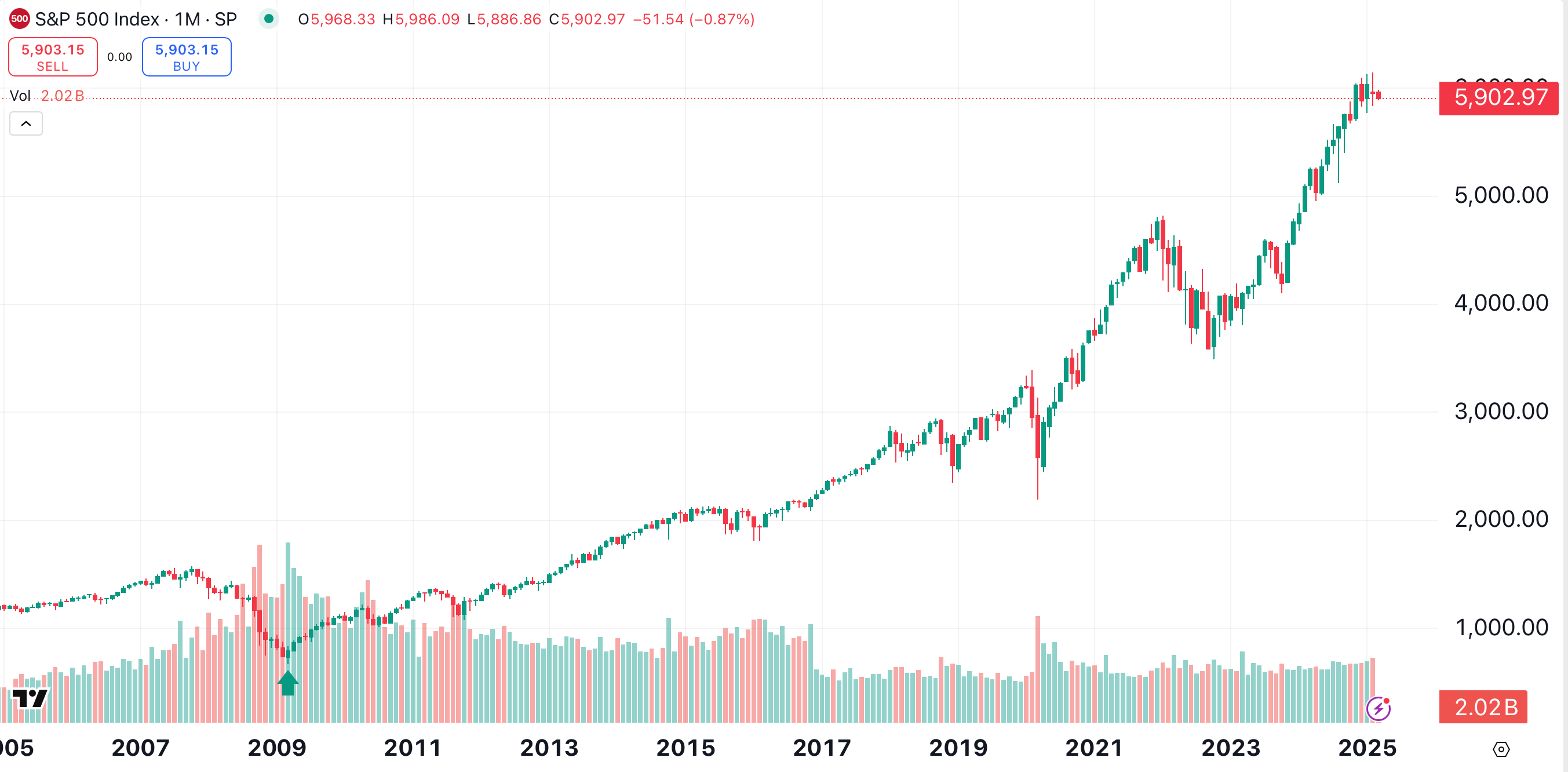 During the 2008 to 2009 crash, the S&P 500 lost over 50% of its value, falling from a peak of 1,576 to the aforementioned 666 low. The preceding crash in 2000 through 2002 also led to a decline of about 50%.