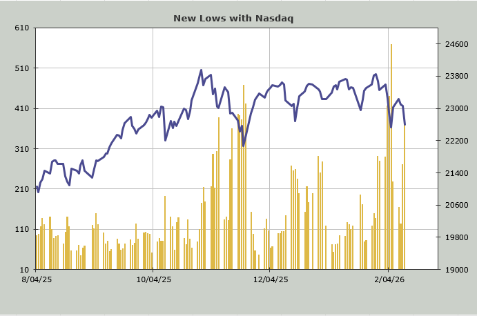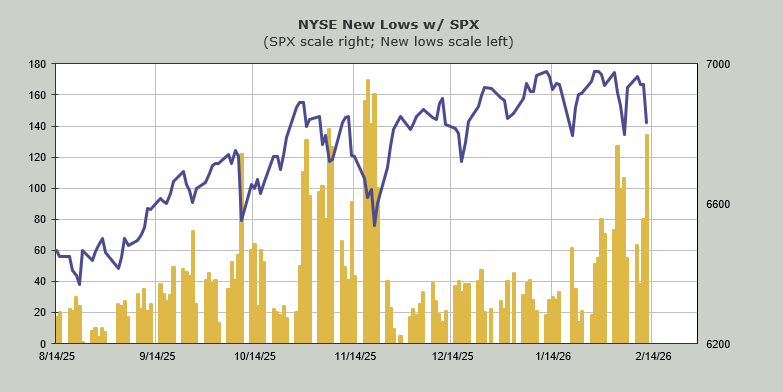The NYSE saw a rise in stocks making new lows, which is concerning since it tells us the selling has spread from tech stocks.