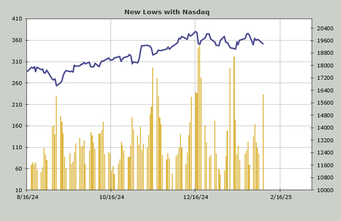 There was, however, enough selling that we saw the number of stocks making new lows expand quite a bit. We’ll monitor that to see if it expands much more on an up day. But for now it is just more chop.