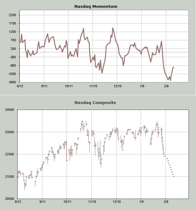 Then there is the Nasdaq Momentum Indicator. What I do here is I plug in lower closes for Nasdaq until I see the indicator stop going down and turn up. That occurs between Tuesday and Thursday next week. As a reminder, the exact day is not the focus; it is the general time frame –we’re heading into it.