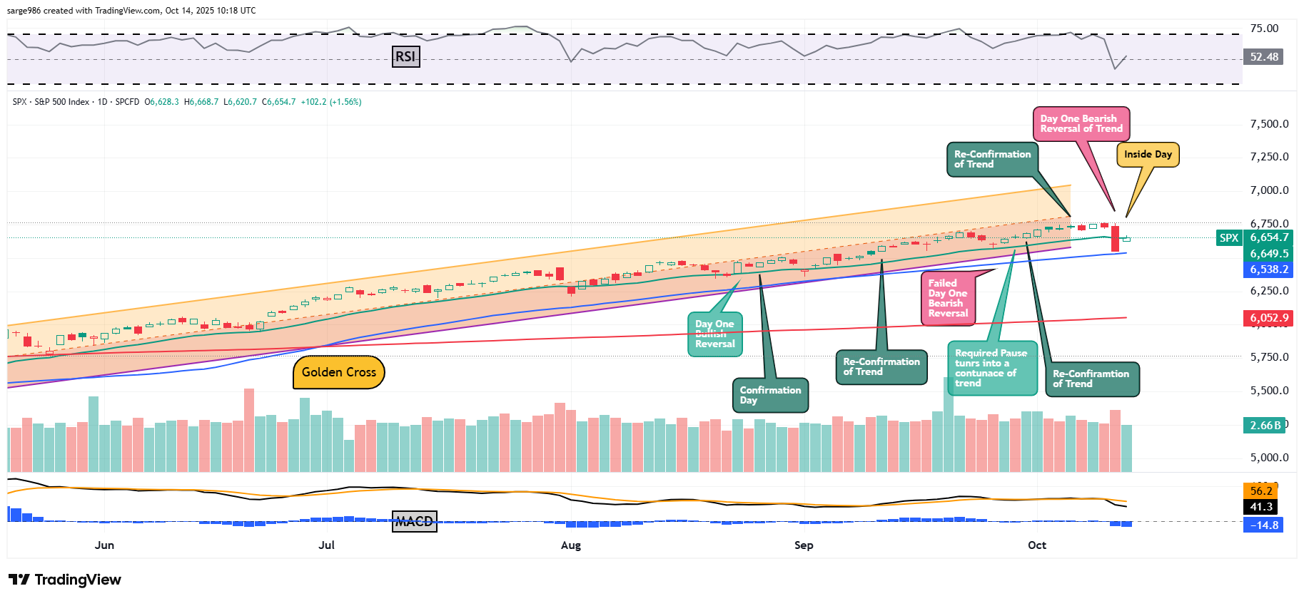 So, was that the "pause?" Maybe. Readers will recall that I wrote to you warning that "they" would try to shake us out of our long positions in October. While the feeling is not one of love and warmth, surprise is not the emotion felt as the market tries to find its way through this period. The screen was greener than a Christmas tree on Monday and greener than a New York Jets fan might be with envy looking at the current NFL standings.