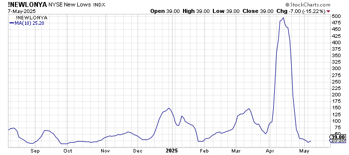 The ten-day moving average of stocks making new lows did tick up for both Nasdaq and the NYSE. That’s normal, but you do not want to see them rising with any gusto as we head into that intermediate term overbought condition.