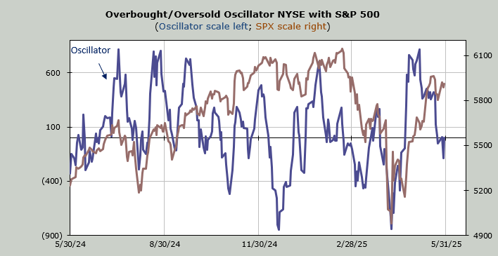 For example, I can anticipate that if the overall market falls in the next few days this Overbought/Oversold Oscillator will be pushing near the lows and therefore we’d be short-term oversold by midweek next week.