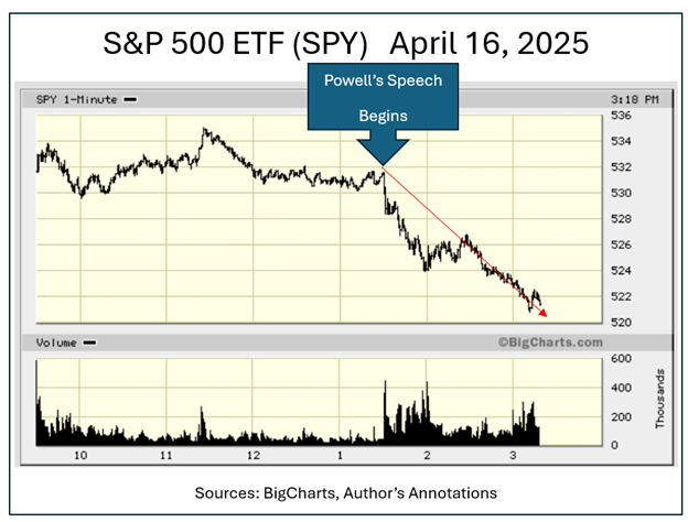 Chair Powell said on April 16 that he will wait until “proof” of a poor economy is evident before cutting rates. The tariff situation is making corporate managements crazy due to uncertainty about where things will sit when the dust settles.