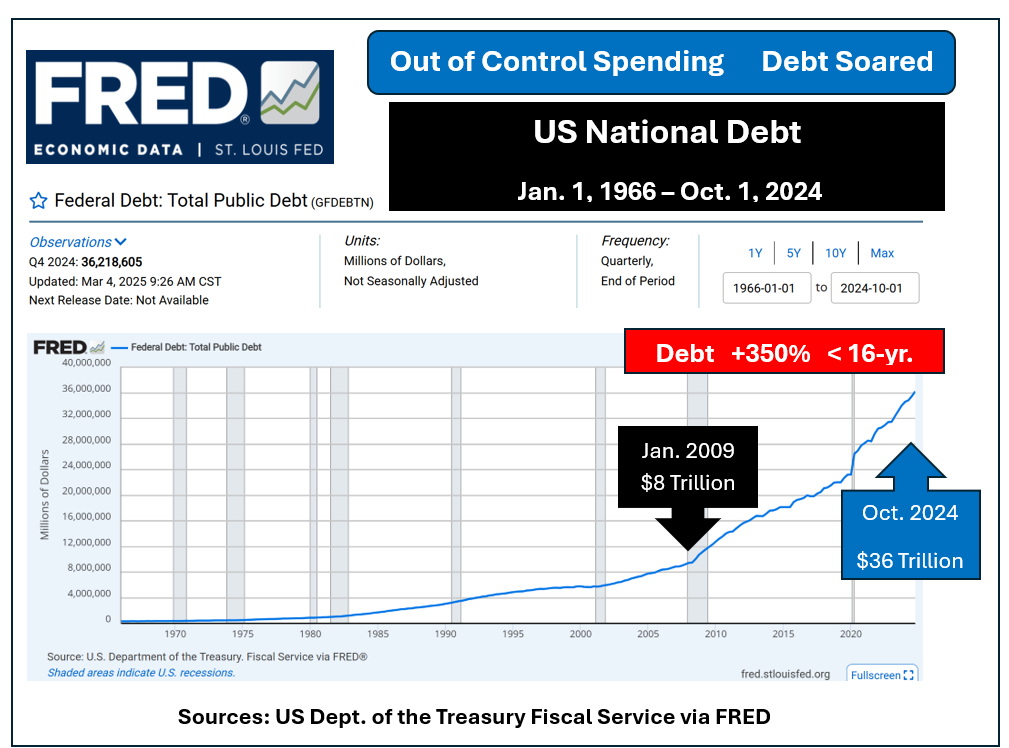 Until the end of the gold standard, by President Nixon in 1991, our Fed could only print as much money as was backed by precious metal holdings. That restrained deficit spending. Since then, however, politicians went crazy with new social programs and the Fed obliged by monetizing the debt.