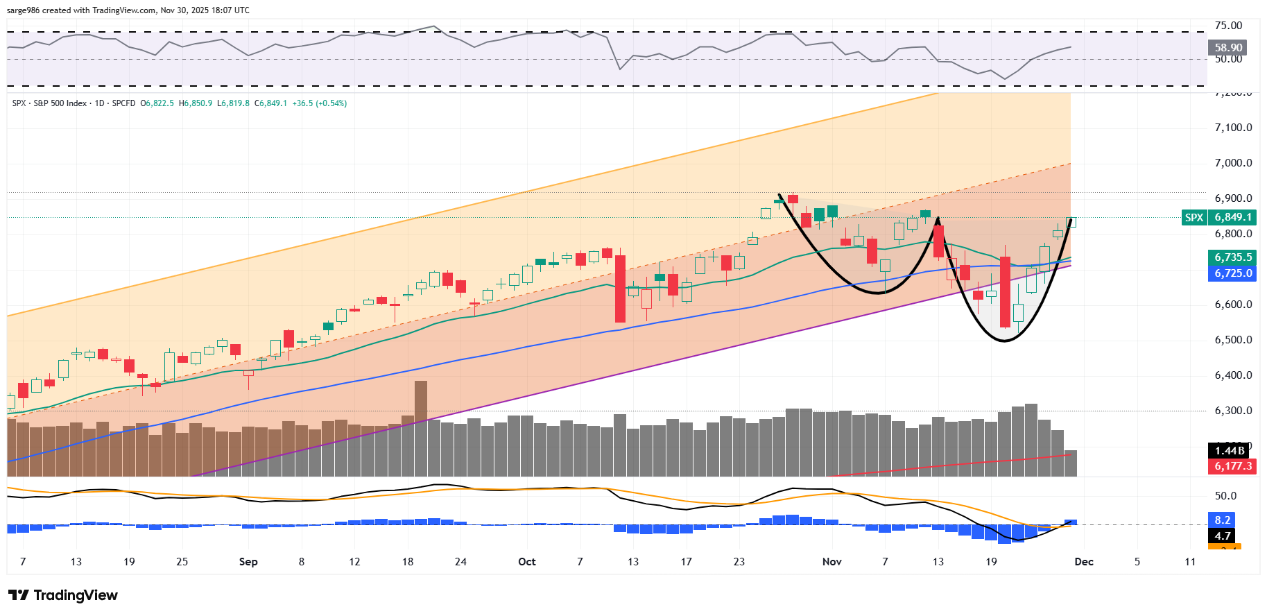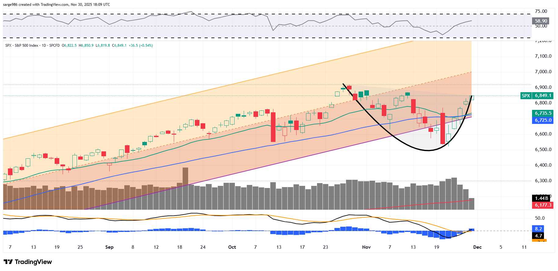 Do you see an "in-progress" Cup pattern? If the pattern develops a handle, that too would be a bullish pattern that will offer us one more dip buying opportunity. Food for thought.