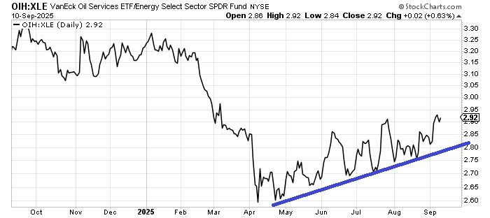 I was so focused on the Utes this week that I forgot to note that OIH has been outperforming XLE since the calendar turned to September. Not by a lot, but long-time readers will know that I tend to like it when the higher beta (OIH) outperforms the lower beta (XLE). It's like the SOX outperforming the Nasdaq. It’s been in an uptrend since May, but the trend has been pretty rocky.