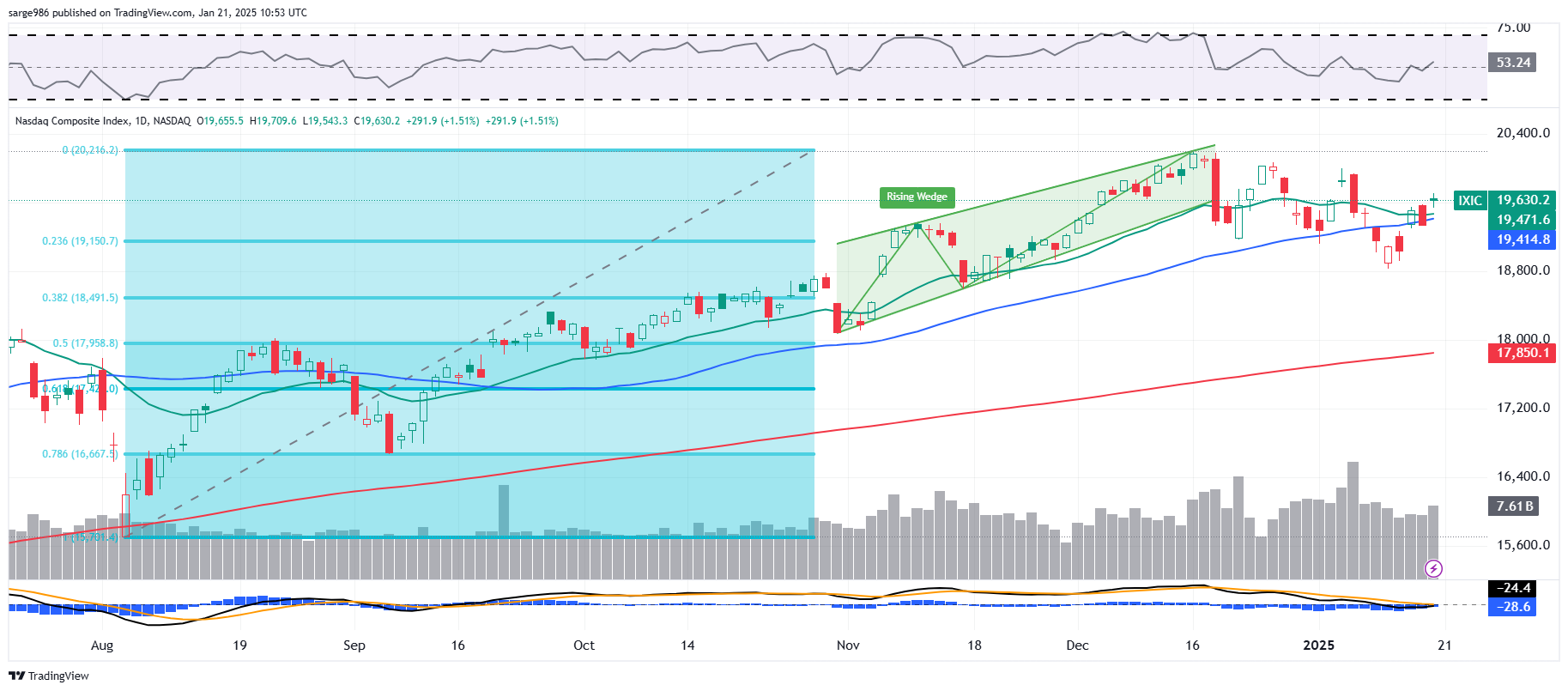 Readers will note that the index has recaptured both its 50-day SMA and 21-day EMA, which could provoke both portfolio managers and swing traders onsides, as just as above, both the Relative Strength Index and daily MACD have re-postured themselves much more bullishly.