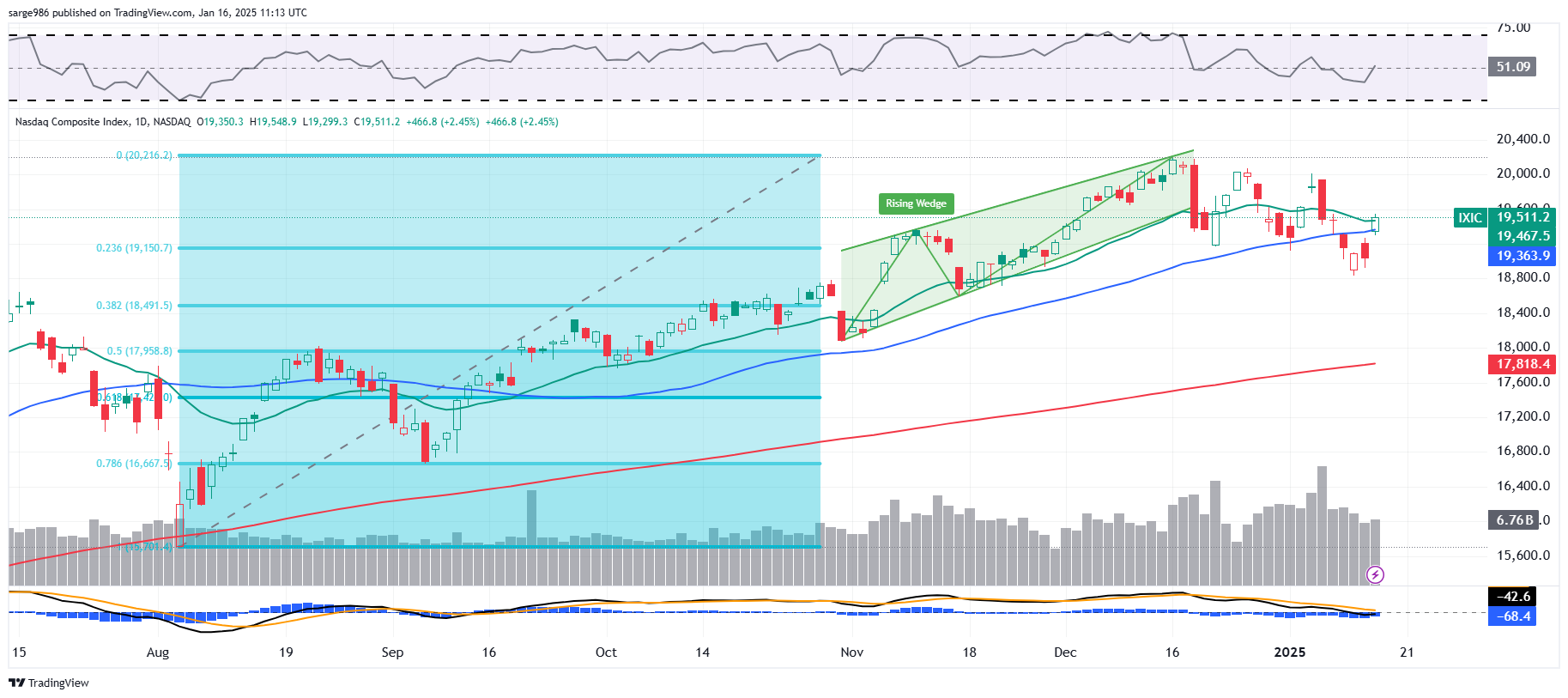 For the Nasdaq Composite, we also see the Rising Wedge pattern that we had discussed and that did produce a selloff. That said, Wednesday was the first "up" day for the index after a five-session losing streak, and trading volume expanded from where it had been.