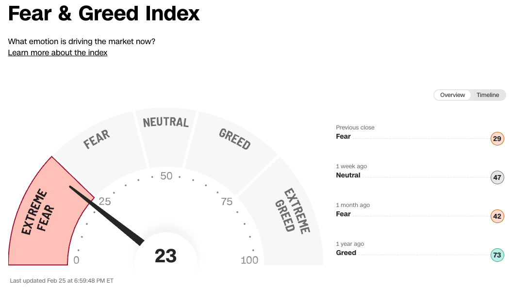 Extreme Fear. Investors are extremely fearful. At least, that’s what CNN's Fear & Greed Index is saying.