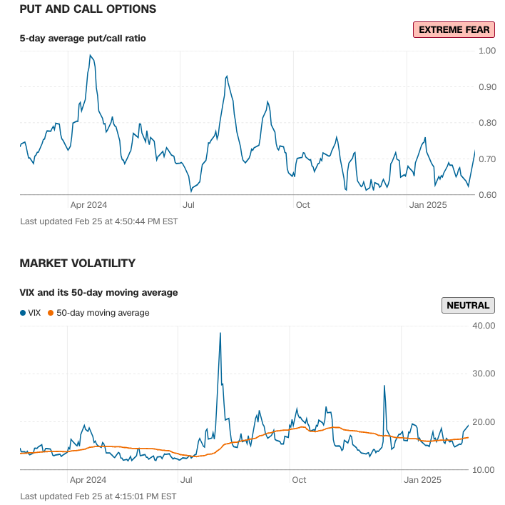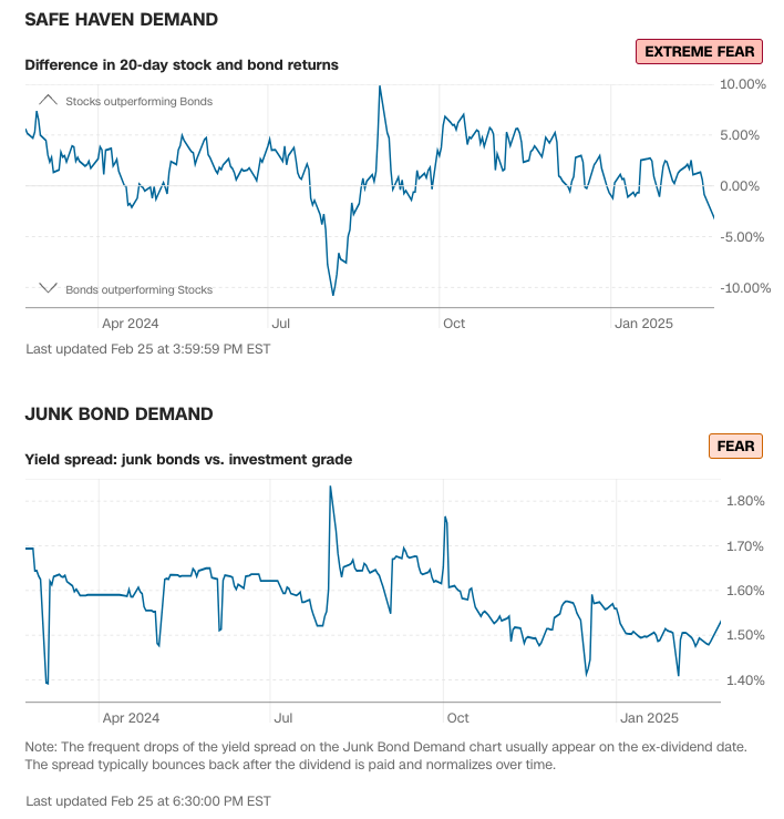 Additionally, both measures of market breadth have continued to roll over. Some of that is rotation out of the Mag 7 and into safer stocks, but more of it is investors walking out the door with their money. Risk off. What will bring them back?
