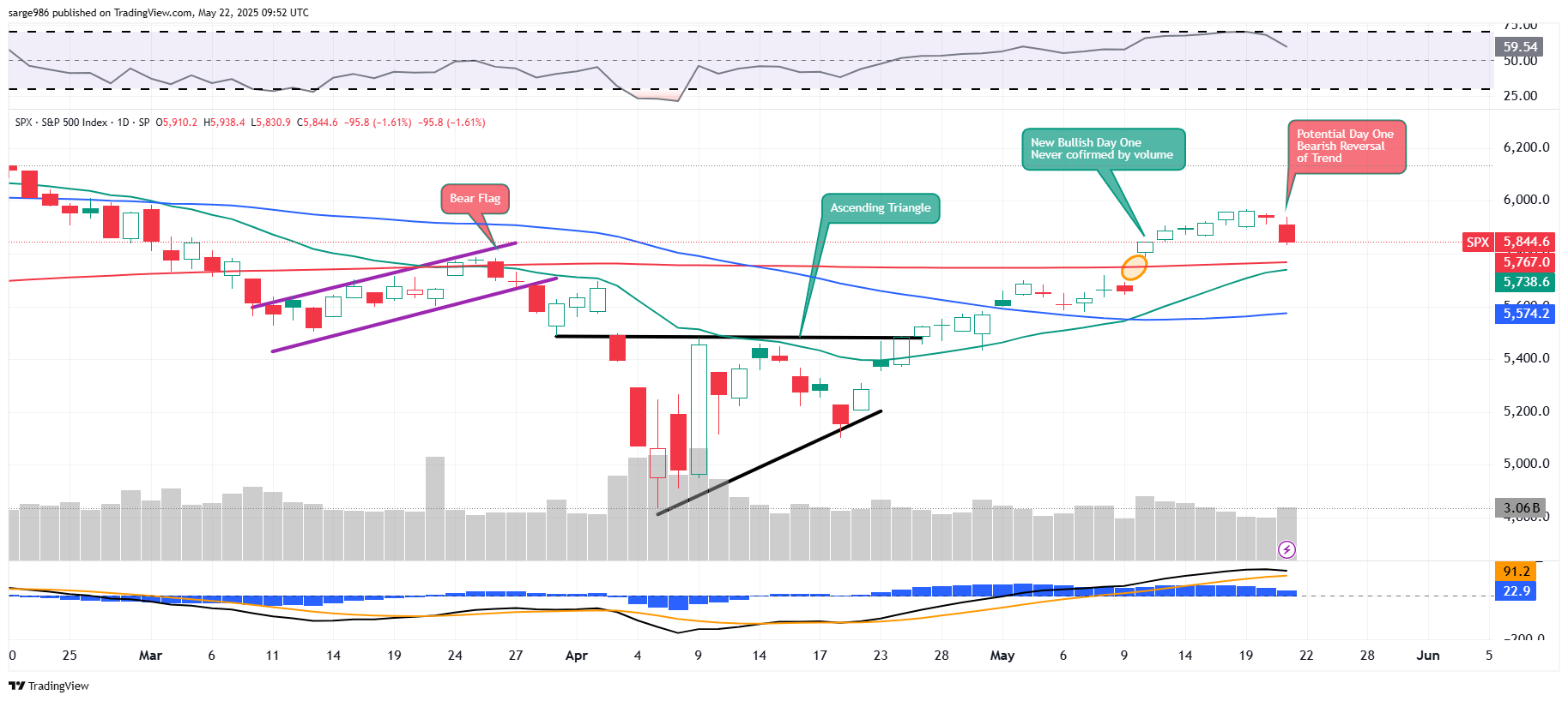 Then we get to the bullish regeneration of a "Day One" set-up on May 12. This "Day One," readers will see, was never followed by the required pause as trading volumes drifted lower for five consecutive green candle days.