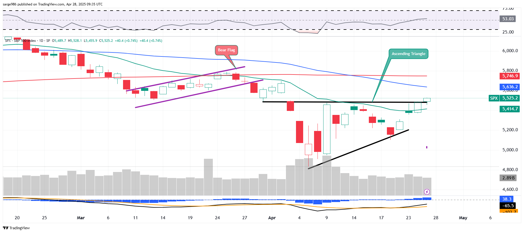 Readers will recall the "bullish" ascending triangle pattern that we showed you as last week wore on. On Friday, the attempt was made by the index to break out of this pattern. Should the index find support early this week at the level that had been resistance since early April, that could go a long way as markets roll into several Mag 7 earnings releases as well as the release of several key macroeconomic data-points.