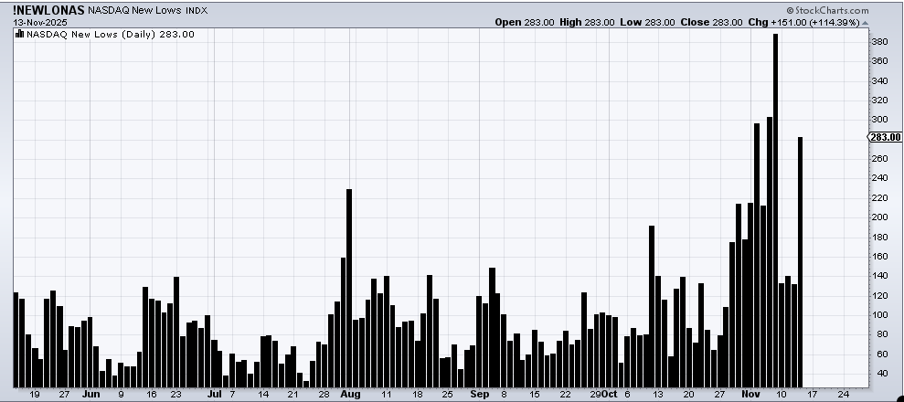 Just take a look at downside volume. The NYSE had 80% on the downside (high but not excessive), and Nasdaq, where all the selling was concentrated, had 63% of the volume on the downside. So if you were looking for panic, there was not much of it.