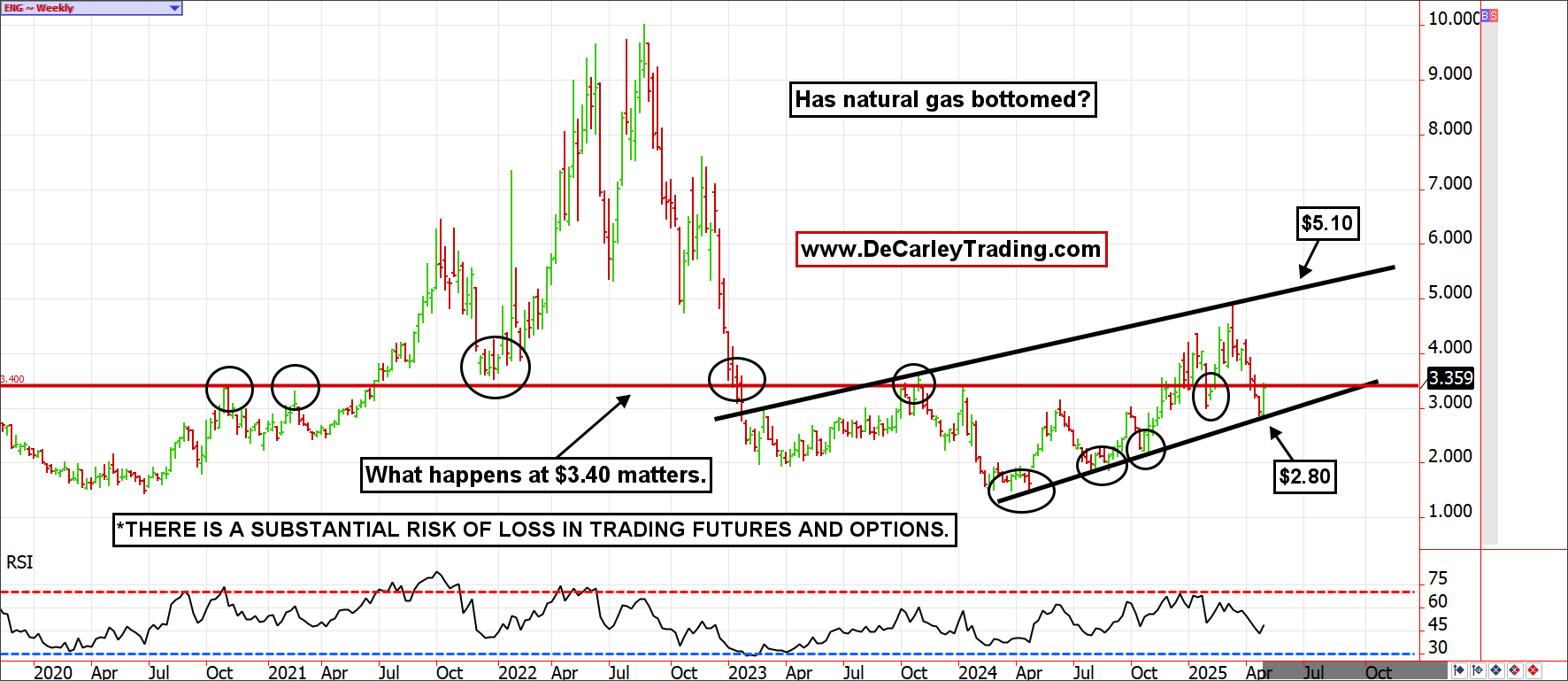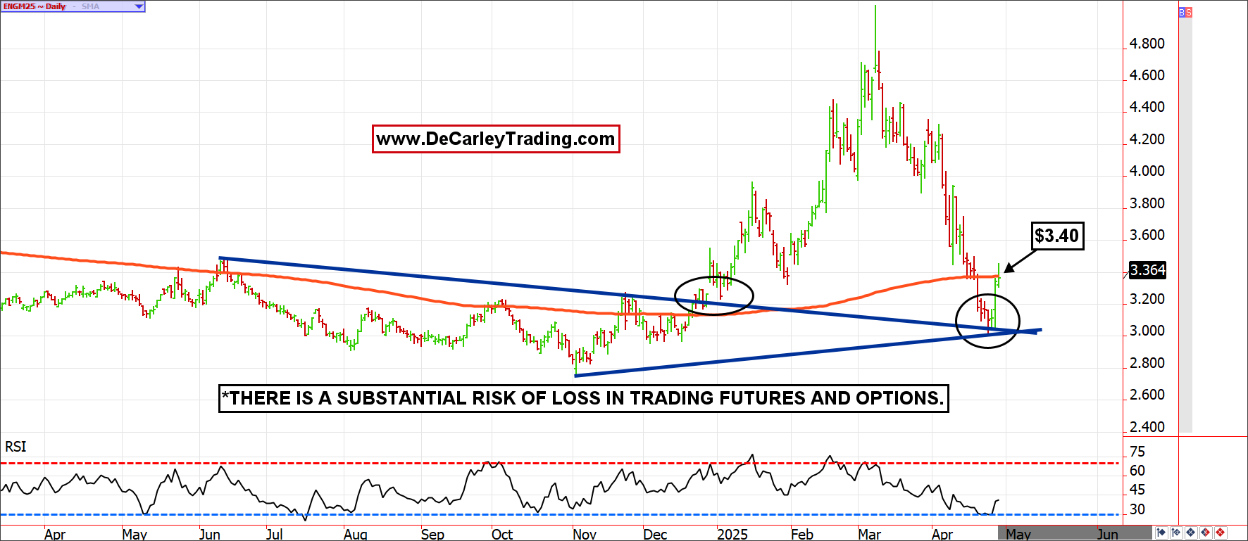 In addition to being the 200-day moving average, $3.40 has been a price level that has sparked market reaction. In short, the market is bullish above and bearish below.