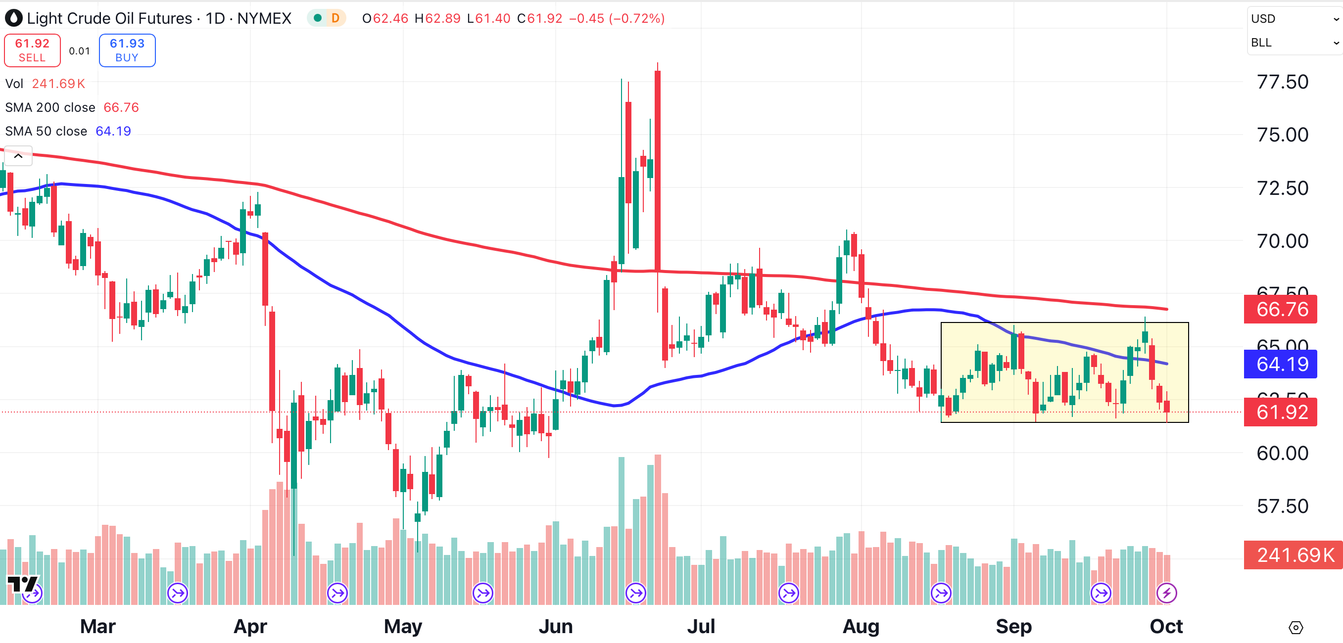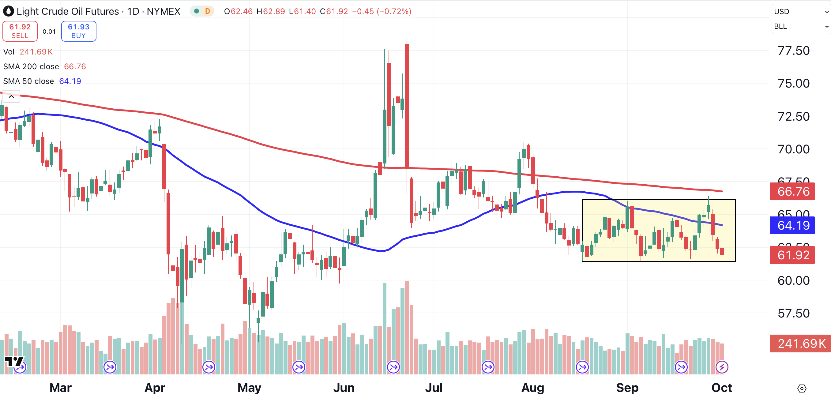 On Wednesday, WTI spot crude oil traded down to $61.65. That’s the lowest level since June 2, four months ago.
