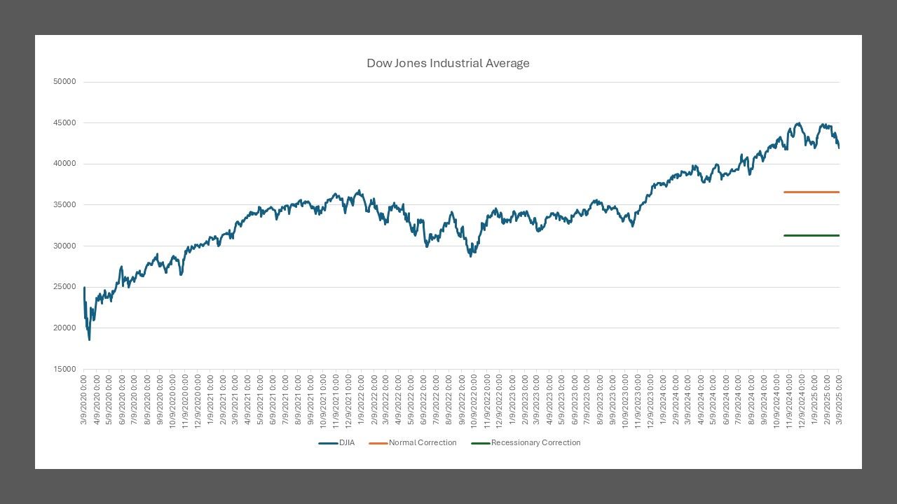 As of March 10, 2025, with the DJIA’s fair value around 41,904, my forecast results are: