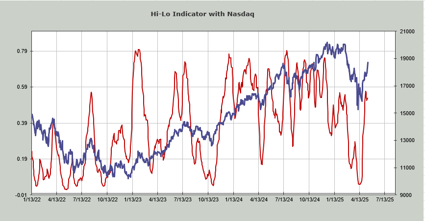 The number of stocks making new highs increased modestly, but the Nasdaq Hi-Lo Indicator ticked up ever so slightly. I think it will tick up some more over the next week. The key is if it ticks up over last week’s high. That remains to be seen.