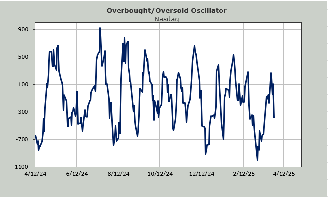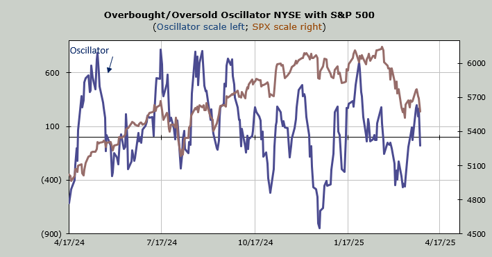 Imagine my Overbought/Oversold Oscillator getting back to an oversold condition. The math shown here on Friday ‘says’ a few days of downside would get us there.