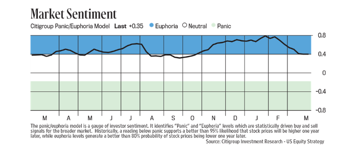 Imagine the Citi Panic/Euphoria Model finally slips out of the blue (Euphoria) and into the white. Again, not extreme, but a change worth noting.