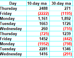 Notice that I have also included the 30-day moving average numbers so you can see they aren’t terribly supportive of a rally next week either. I would like to see a pullback on Thursday and another push up Friday, just to get us past that Friday number, but when I look at this setup, I conclude next week should be more choppy, if not see some giveback of this week’s rally.