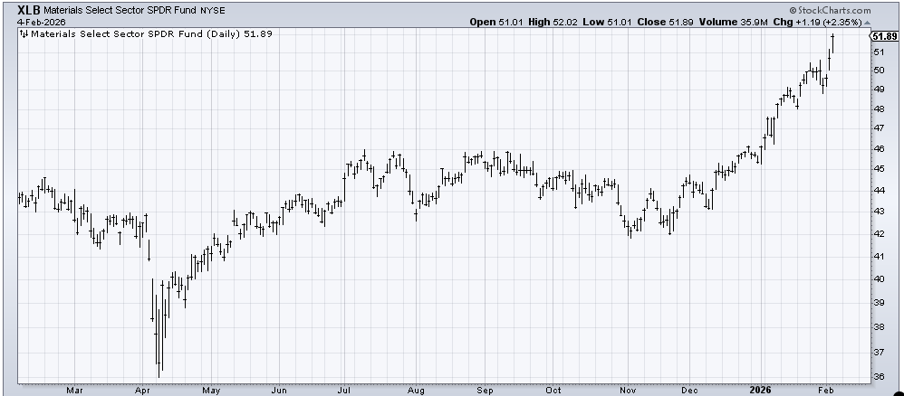 Even my old friend XLB, the materials sector, is cruising along.