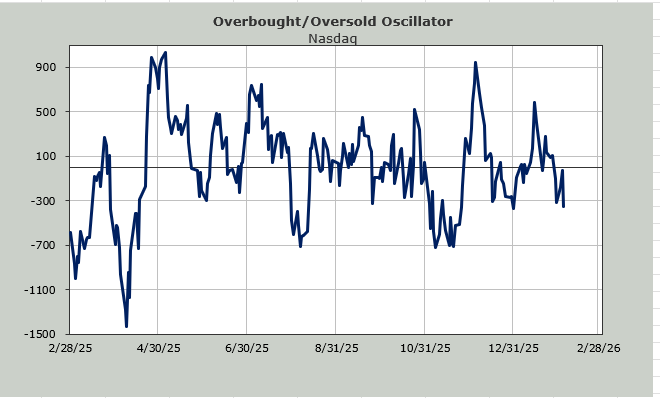 I have noted the last few days that I expect Nasdaq to get to an oversold reading later this week, using my own Overbought/Oversold Oscillator. If I use the Nasdaq Momentum Indicator (not shown), it tells me early next week Nasdaq will be short-term oversold. So, I do expect, within a few days, we will see an oversold rally in tech-land. Another down day in software and/or semis, and the bottom fishers will surely quiet down. I didn’t hear one person quoting the RSI on Wednesday!