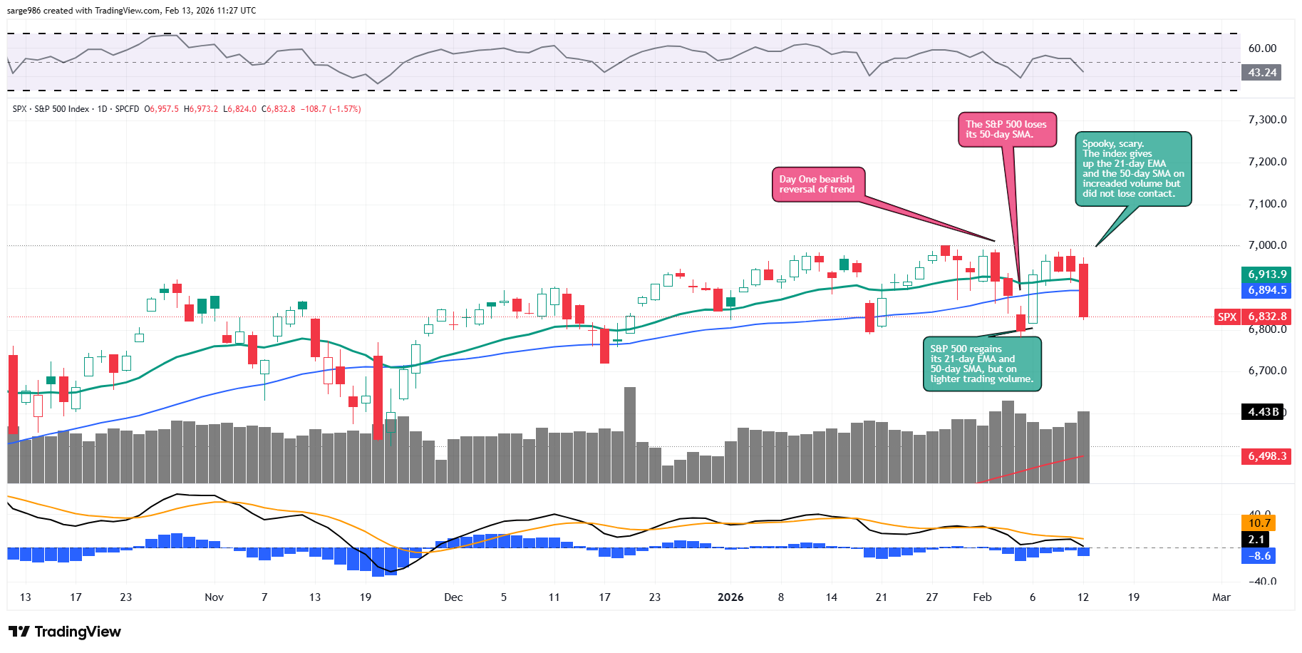 Readers will see that the S&P 500 lost both its 21-day exponential moving average and 50-day simple moving average on Thursday, as the swing crowd broke and the pros backed off. ​