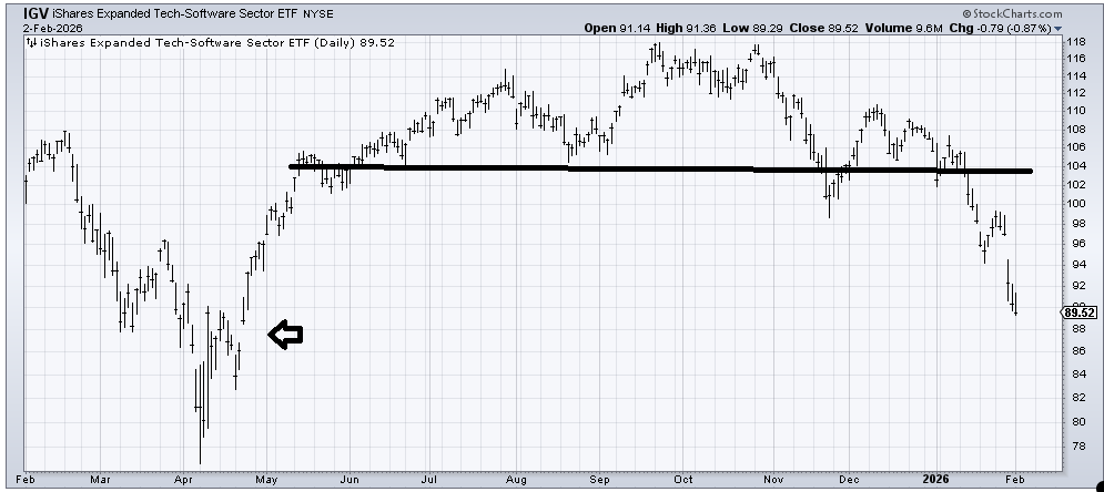 Then there is a chart where we see the breakdown, we see the top, and everyone is watching it, and yet they still keep trying to pick the bottom. I am going to put software into the group.