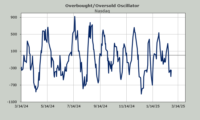The Investors Intelligence bulls came down five points to 44.3%. That’s about two points higher than the January low reading. So that’s moving in the right direction. The bears, however, came down a point as well, so they remain well off the January level of over 30%.