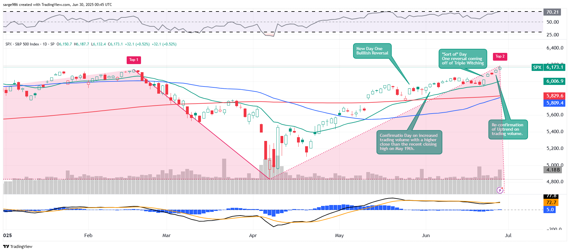 On Wednesday, the S&P 500 gave us the necessary pause that must precede a day of technical confirmation. Then came last Thursday. That was an impressive upside move on increased day over day trading volume. Confirmation Day. On Friday, markets benefited from the algorithmic response to this re-confirmation of an upside trend.