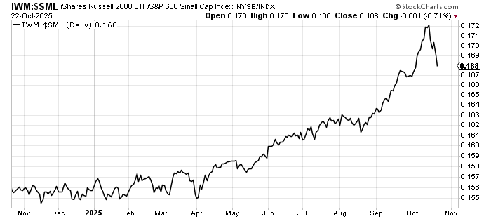 I am talking about the continued decline on the ratio of IWM to SML. Call it what you want, I call it the reversal of the unprofitable to the profitable.