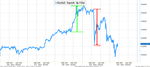 I think the narrative was aided by low liquidity during the holidays. Then as some traders tried to counter the moves higher, the cries of “debasement” grew louder (literally, could not go 15 minutes of financial media without hearing the word bandied about like it was a foregone conclusion). That spurred stop losses. It fueled even more speculation.
