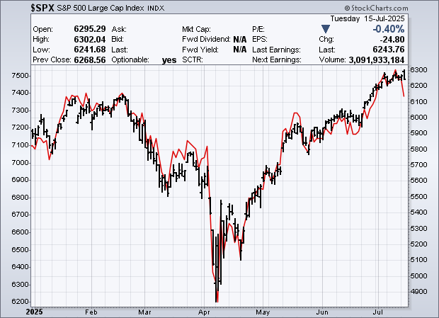 The two versions of the S&P 500 have largely performed in line with each other this year. That said, see that downturn at the extreme right for the red line? Yeah, that. Small to midcap stocks were pounded. The S&P 600 gave back 2.1% and is now down 4.06% year to date. The Russell 2000 surrendered 1.99% for the day and is now down 1.13% year to date. The S&P 400 (mid-caps) is still up a mere 0.14% for 2025 after being roasted for a loss of 1.8% on Tuesday. This obviously put the whammy on breadth. Oh, the KBW Banks were also slapped around (-2.42%) after the group kicked off Q2 earnings season.