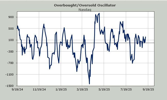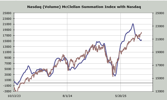 But what changed is that the McClellan Summation Index for Nasdaq, where I use volume, finally stopped going down, and you need a high-powered microscope to see that it hooked up just a tiny little bit. This is the first uptick in this indicator since mid-July.
