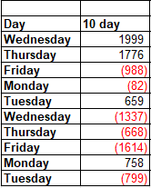 I don’t know if the market will accommodate me, but I would love to see Nasdaq with another down day or two before we get to Friday because that would give us a good short-term oversold condition. Here is the table of the numbers we are dropping off the ten-day moving average of breadth for Nasdaq. You can see Wednesday and Thursday are going to be difficult to ‘better’ but starting Friday, we’re looking at a decent string of red numbers, certainly enough to get software to bounce. And if tech doesn’t bounce Wednesday and/or Thursday that Fear and Greed Indicator will surely be in Extreme Fear by then!