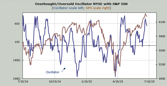 In any event, the overall market just did a group rotation on Tuesday. Out with the banks and in with energy. None of the indicators budged. So far, the market is pulling back mildly to relieve the overbought condition and try and change the overly bullish sentiment.