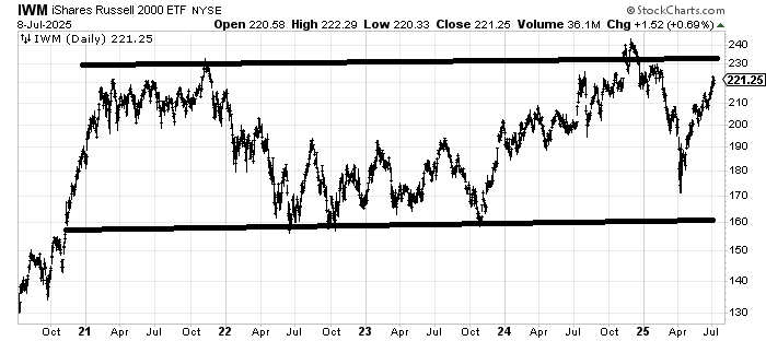 I did see someone note that the Russell is the same price it was exactly four years ago, so I took a look. Sometimes we get so caught up in the day-to-day movements of the market that we forget to take a step back and look at the big picture. Would it surprise you to see that the Russell 2000 (IWM) is trading where it was in 2021?