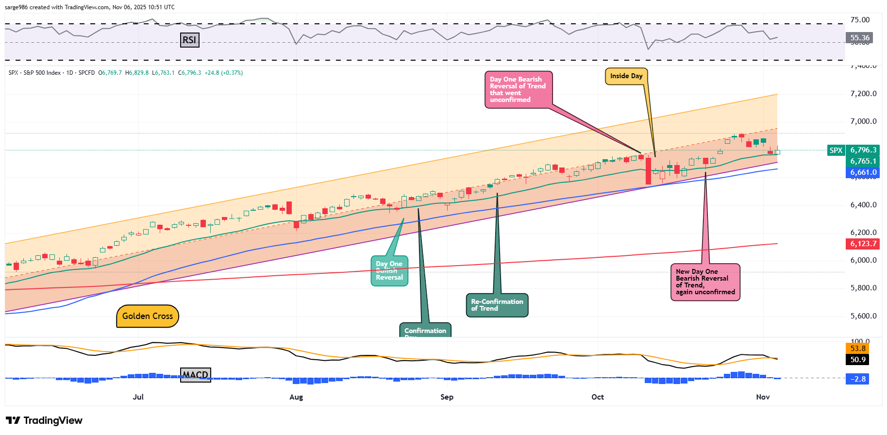 Just look at that consistent respect for the trend. Just look at the way the swing crowd defended the S&P 500 at the 21-day exponential moving average. Two days in a row, the market has hit the 21-day exponential moving average and stopped like it hit a brick wall, reversing higher on Wednesday. The trick now is to get that little black line (12-day EMA) in the daily Moving Average Convergence Divergence back above the little gold line (26-day line). If the market can do that, while pulling the histogram of the 9-day exponential moving average out of negative territory, and all of these conditions are close, then the trend can continue as if Tuesday was nothing more than a bad dream. Fail to turn these indicators? Well, then the nasty dream starts to become reality.