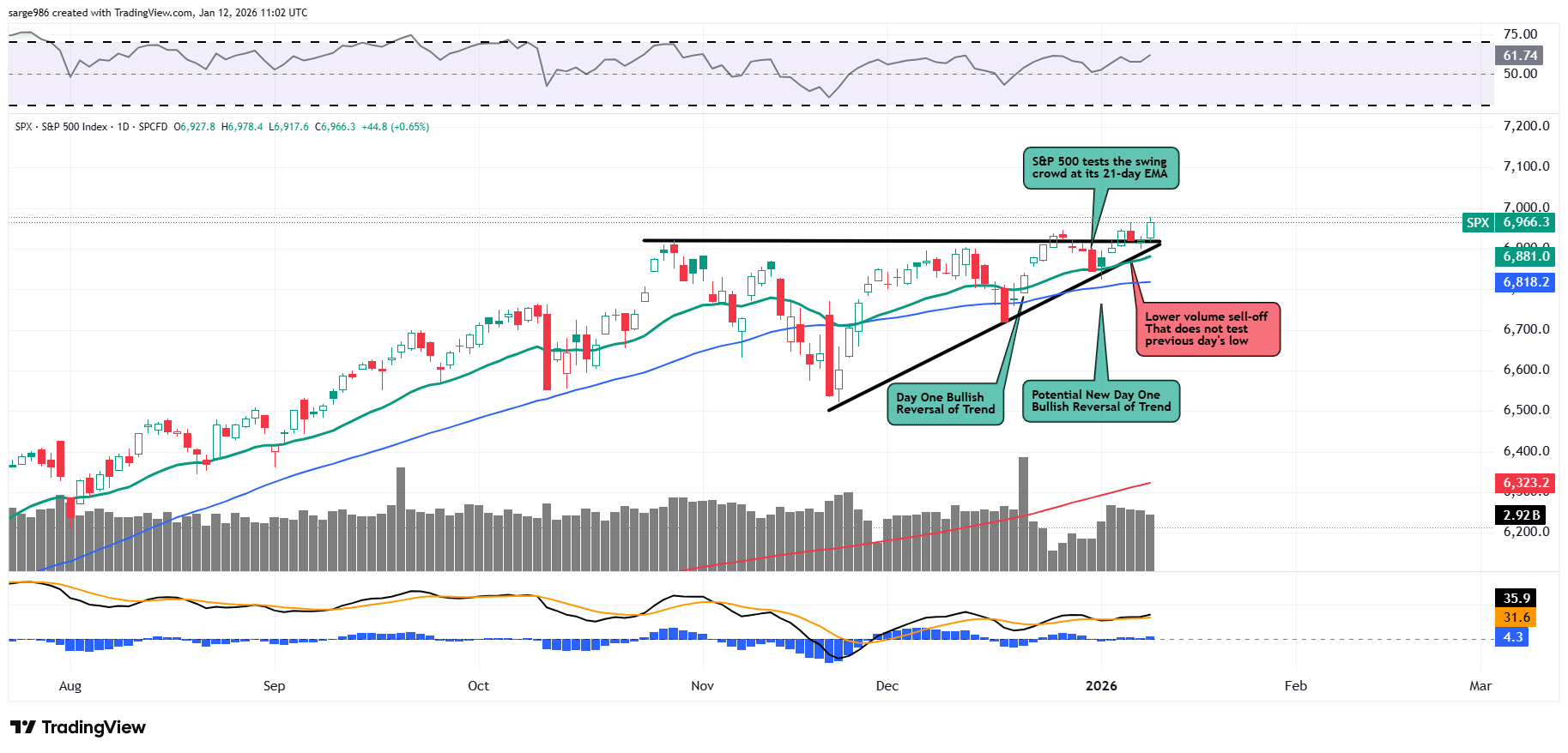 ​Readers will see that on Friday, the S&P 500 appeared to have broken out beyond and held the pivot created by our Ascending Triangle pattern of bullish trend continuance. "Huzzah" screamed the crowd. Then one cried out... "But Sarge, was it a "Day of Bullish Confirmation." Excellent question, my young student. Class, the answer in no, why is that?