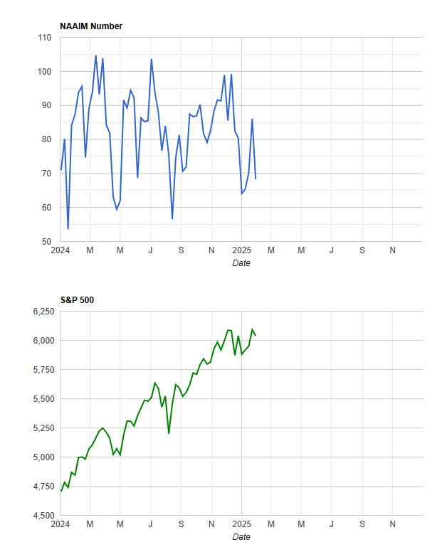 But, it’s sentiment we have to get back to. The good news is that I believe the National Association of Active Investment Managers proved me correct this week. It has been my view that they live and die by the Index movers/Mag 7, not the overall market. They took their exposure down to 68 this week, down from 86. I suspect that Monday’s market and the AI question scared them.