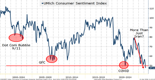 While I generally pay very little attention to "CONsumer CONfidence," it does deserve attention when it hits a low going back decades!