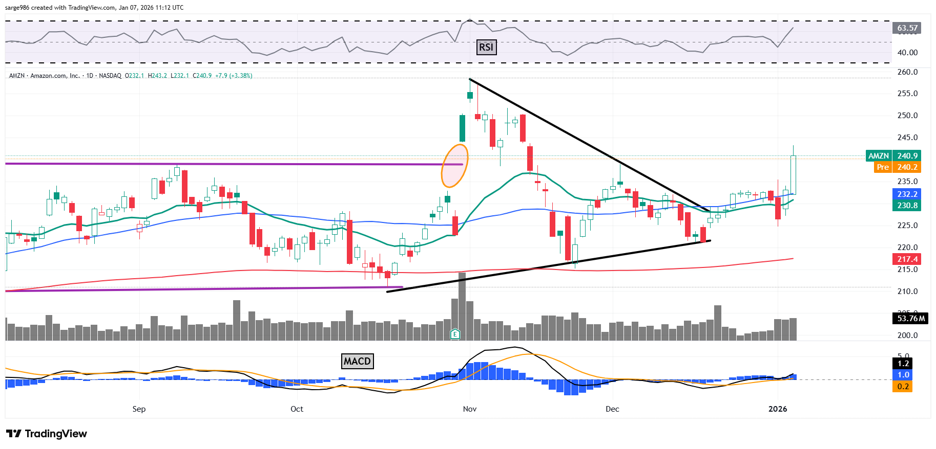 Is this finally Amazon's (AMZN) time? On Dec. 17, I gave you Amazon as my runner up for 2026 stock of the year. I know you want to hear about SoFi Technologies (SOFI) , because that name was my 2026 stock of the year and it got its tail kicked on Tuesday. SOFI was down 7.9% on Tuesday but is still up 3.1% for January. I will come back with more on that name. We also have to talk about Rocket Labs (RKLB) , which smashed our target price on Tuesday.
