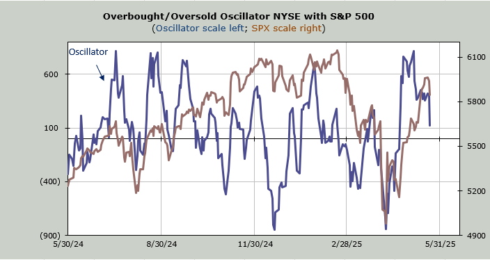 Can we rally into the weekend? Sure. But with the Summation Index no longer rising and the overbought condition upon us, it would probably be ‘one more rally’. I still think we are set up to see a pick-up in volatility in June.