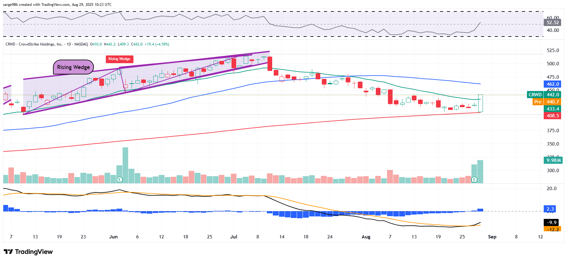 Yes, we've discussed the Rising Wedge pattern of bearish reversal in the past and it did do its job. That said, look at the support that this stock has found at its 200-day Simple Moving Average not just on Thursday, but for the week ahead of that earnings release. The stock gained its 21-day Exponential Moving Average, which probably brought some swing trades on board.