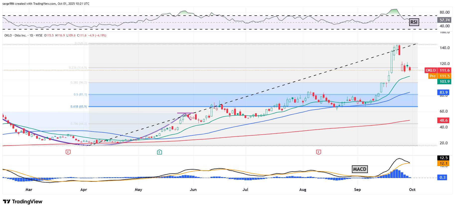 Well, no spit, cowboy. anyone can see what the stock just did. The fact is that OKLO is one of a few key participants in the Department of Energy's "Reactor Pilot Program" and the government wants test reactors up and running by June of next year. There is a need for clean, nuclear power like never before and that demand is only going to increase. I am not in this stock just yet, but I am really close to pulling the trigger as the stock approaches some key moving averages and key Fibonacci retracement levels.​