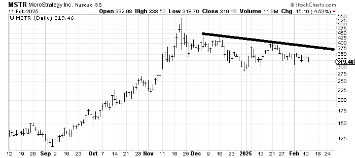 I have complained about what I call the "crypto garbage." We can use (Micro)Strategy where we see it has done nothing for months now. Oh, it has a downward bias, but it has not broken yet. I am still not a fan.