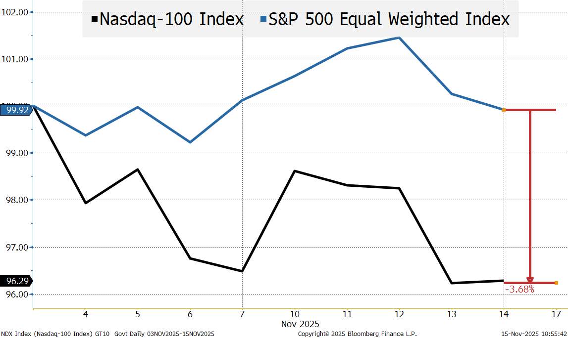 Also, I think the pain continues. The Nasdaq 100 is down on the month and the issues facing it (discussed above and detailed last weekend), have not been resolved. If anything, the big move on Monday and then the fierce dip buying on Friday may well have left a lot of short-term “trading” longs exposed to a further pullback.