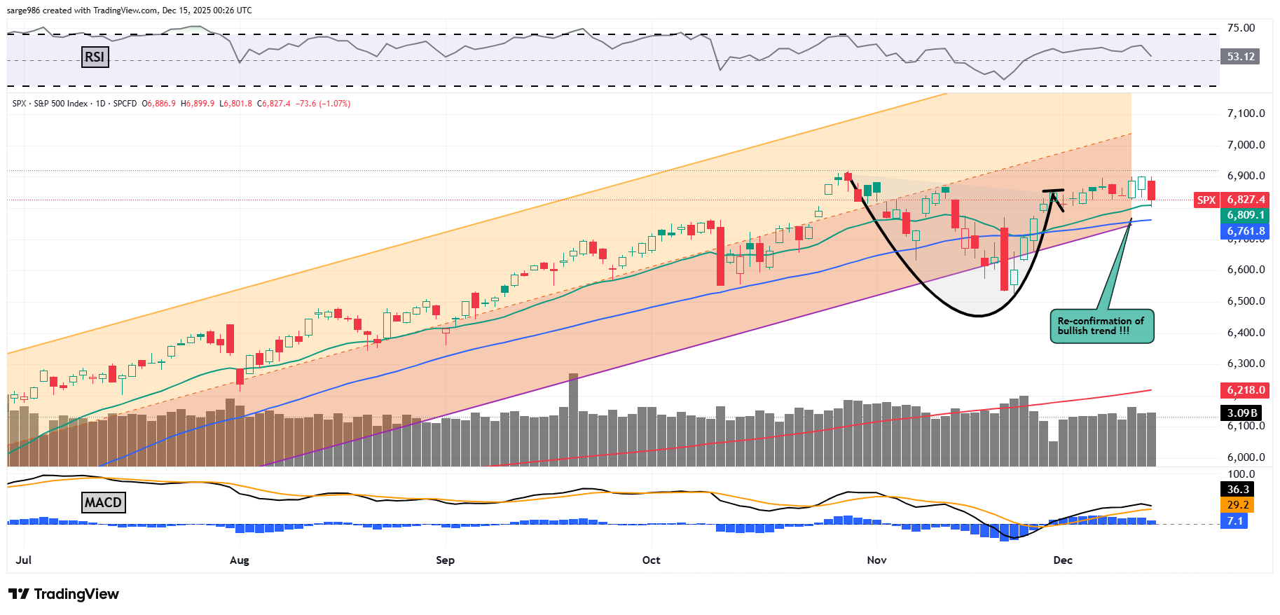 Tis' the season? Since 1950, the S&P 500 has closed the month of December in the green a rough 73% of the time for an average return of about 1.4%. Now, this is important. I'm not sure we need to worry about this as much as we seem to be. I could be wrong. I am not all that confident that what we see is a mirage, but traders need to be fully cognizant of the fact that historically, December is not positive for the S&P 500 on average through Dec. 15.
