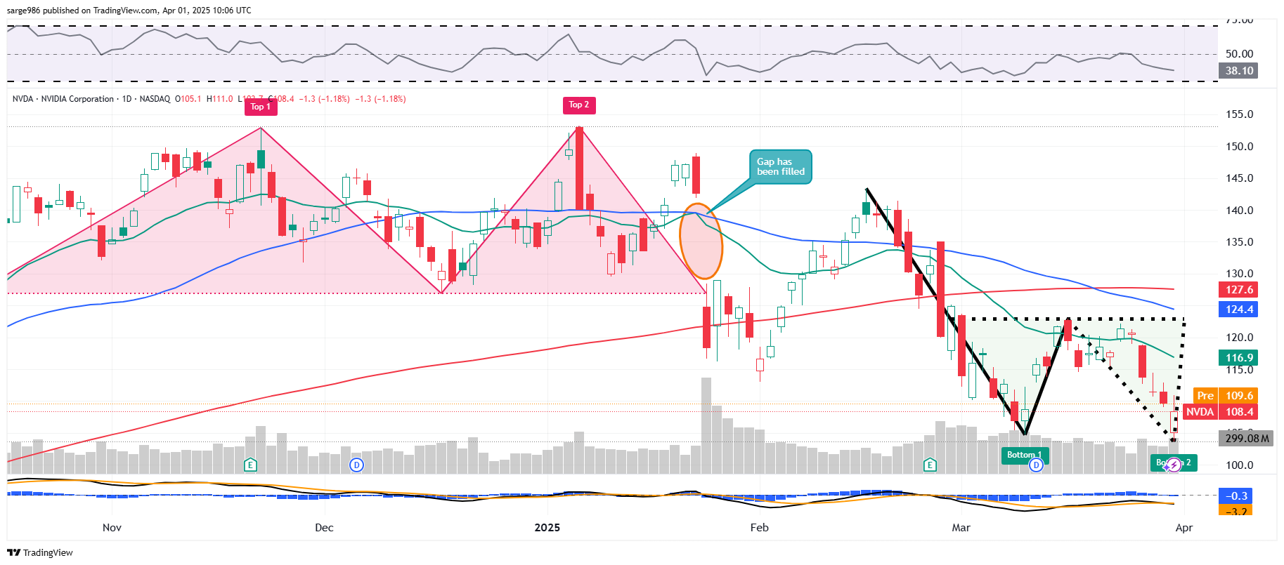 Did we just witness Nvidia NVDA sell off January into March coming off of a "Double Top" pattern and then suddenly develop a "Double Bottom" pattern of bullish reversal? It is too early to tell, but last week I did write to you and told you that I would add at least for a trade if the stock tested the $105 level.
